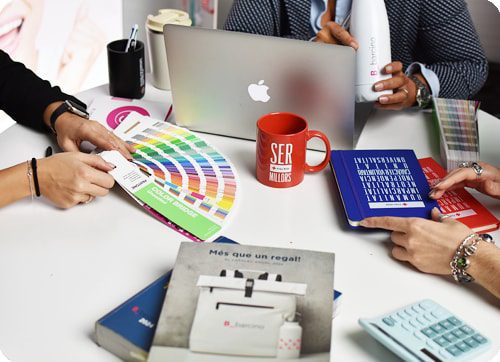 Nos encargamos de todo el proceso, desde el principio hasta el final: idea, diseño, ejecución…etc. Nuestro equipo está formado por expertos en branding, diseñadores, expertos en preimpresión, etc. Te ayudamos a crear el regalo perfecto para tu empresa!