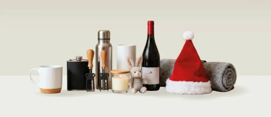 Regalos publicitarios para el hogar: tazas personalizadas, mantas, velas, utensilios de cocina, botellas térmicas, copas grabadas y sets de vino, etc.