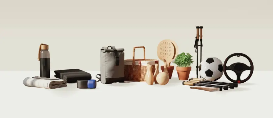 Regalos publicitarios de ocio y deporte: botellas reutilizables, toallas, pelotas antiestrés, esterillas, mochilas deportivas, etc.