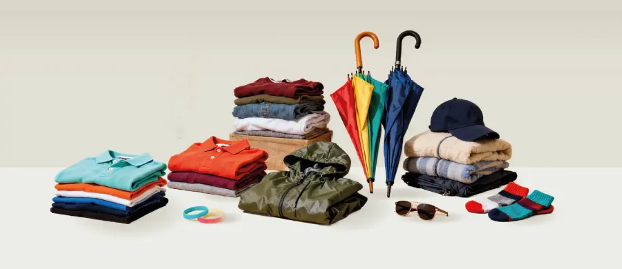 Regalos publicitarios de ropa y accesorios: camisetas personalizadas, sudaderas, gorras, bufandas, paraguas, guantes, chalecos, etc.