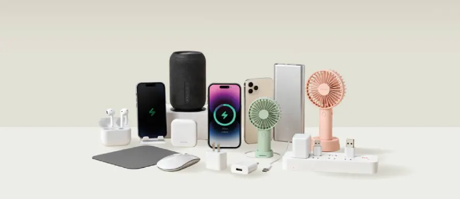 Regalos publicitarios de tecnología: auriculares, altavoces bluetooth, soportes de móvil, cargadores USB, ventiladores portátiles, etc.