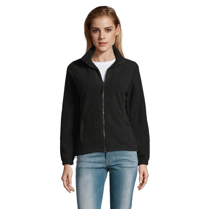 Chaqueta polar North para mujer, ideal como prenda corporativa personalizada. Fabricada en poliéster fleece de alta densidad, ofrece confort y calidez. Perfecta para regalos promocionales en eventos y campañas de marca. Su diseño incluye cremallera frontal, cuello alto y bolsillos con cremallera. Personalízala con tu logo mediante serigrafía o bordado, transformándola en una efectiva chaqueta publicitaria. Disponible en varios colores. Una prenda promocional versátil para artículos promocionales para empresas.